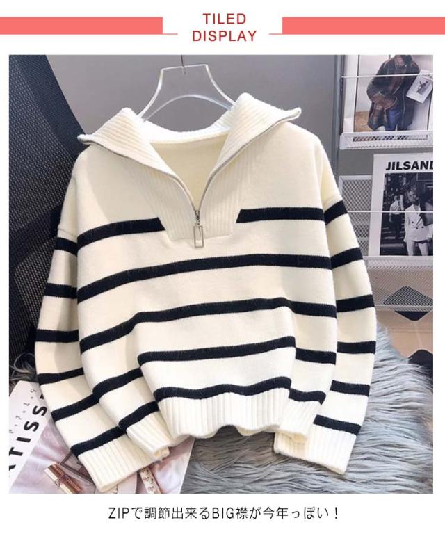 | ・ハーフジップボーダーニット ・ZIPで調節出来るBIG襟が今年っぽい! ・柔らかいニット素材なので着心地も抜群です◎ ・お手入れ簡単なウォッシャブルニットです。 | |