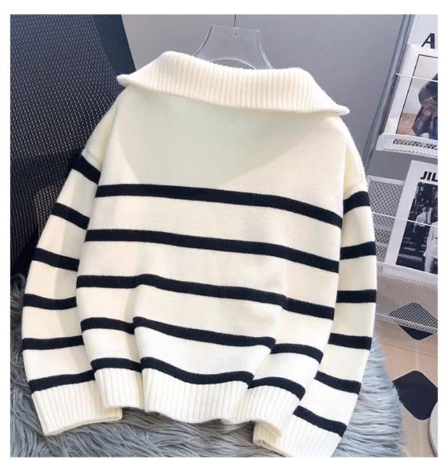 トップス セーター ニットプルオーバー ハーフジップ ニット ボーダーニット ボーダー ニットトップス 長袖 ハイネック ハーフZIP ニット フリーサイズ 厚手 秋