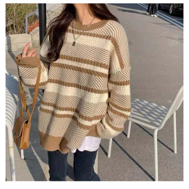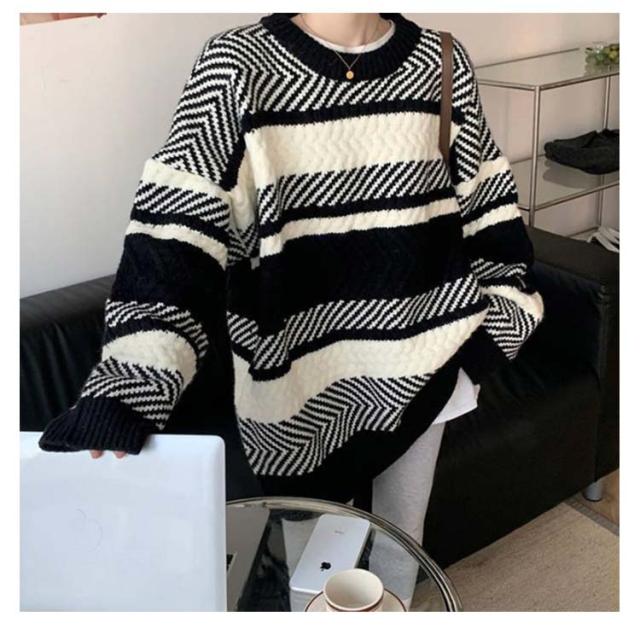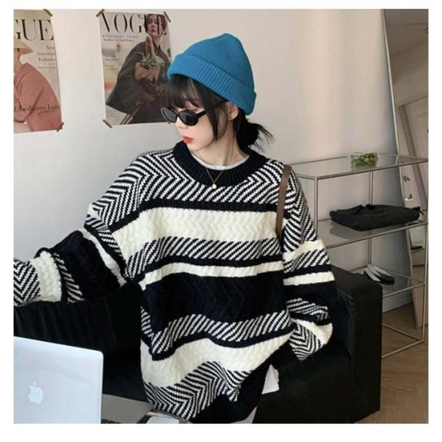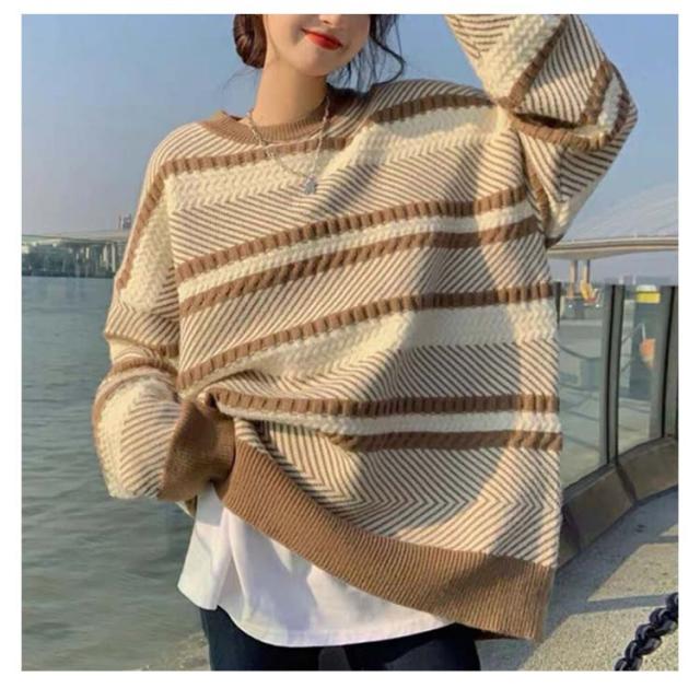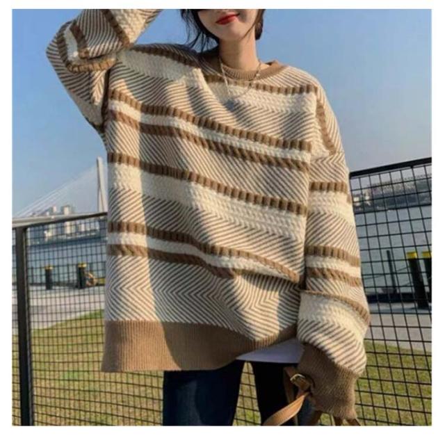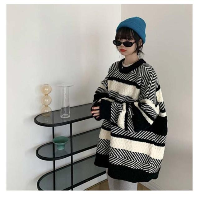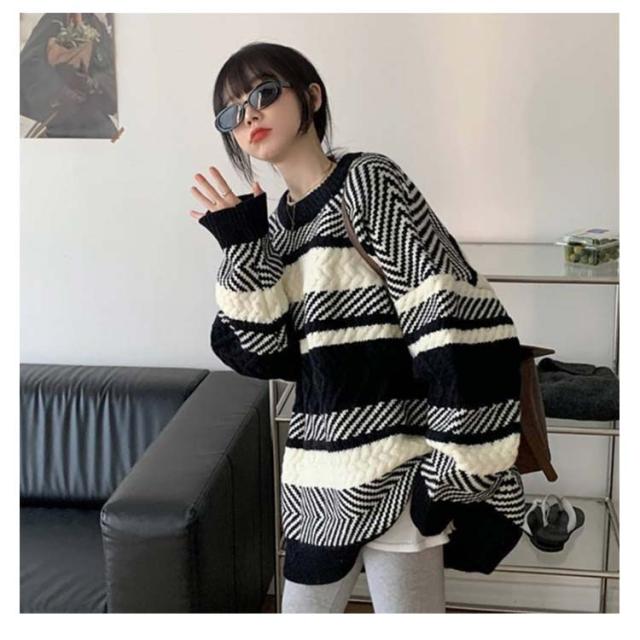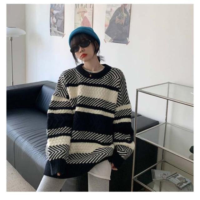 セーター ボーダー ニット プルオーバー レディース マルチボーダー トレーナー トップス 長袖 丸首 肉厚ニット フリーサイズ 秋