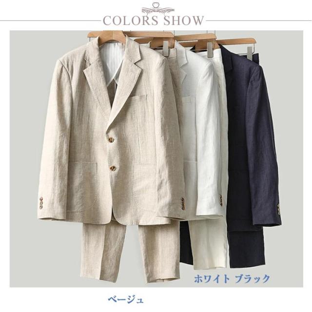 メンズ テーラードジャケット 麻 スーツ 上下 長袖 スーツ 紳士服 サマー セット セットアップ 涼しい カジュアル サマージャケット ブレザー リネンパンツ 大きいサイズ 春 夏 通勤 リネン 大きいサイズ 父の日 ギフト