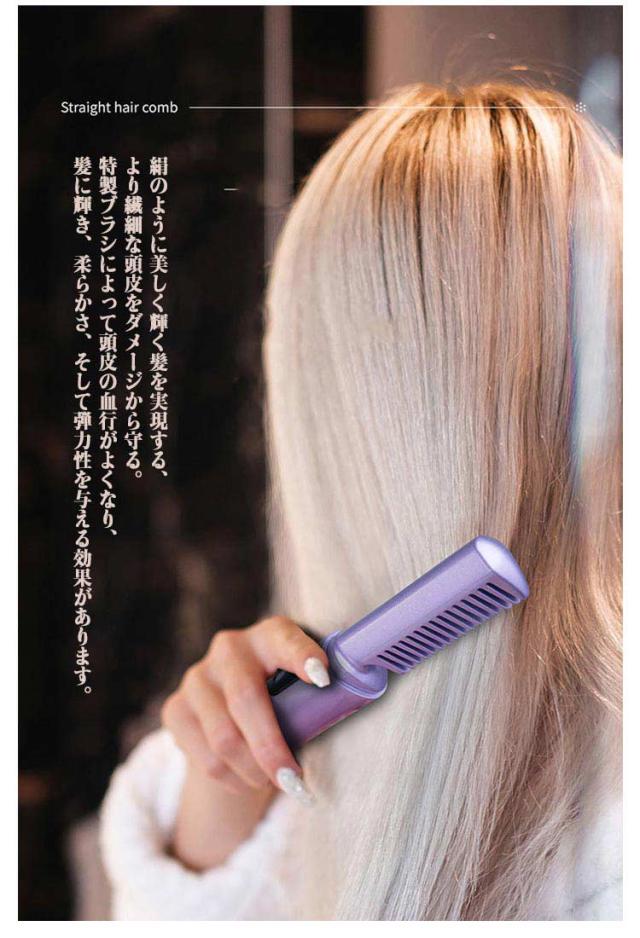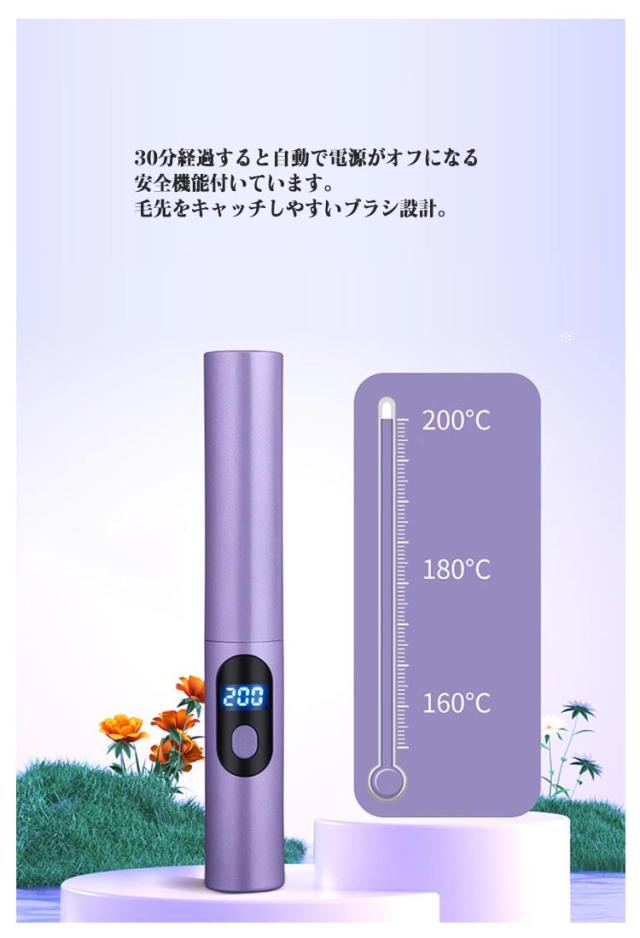 | 【充電式・連続使用】 コードレスストレートアイロンはあらゆる操作にケーブルが邪魔にならず、どこでも使えます。最軽量・コンパクトなデザイン、さらに30〜40分間連続使用可能なので、持ち運びに便利なアイテム!デート/ショッピング/客先訪問すべて楽に対応可能です。 【こだわりの新設計?やけど防止】 安全性アップ。ブラシの外周、ブラシ先端部分に耐熱素材を使用、高温でも地肌を守れます。温度が上がった状態でもブラシの赤い部分があるため、万が一手で握ってしまったり 触れてしまっても、その部分は熱くないので火傷の心配もありません。30分経過すると自動で電源がオフになる安全機能付いています。毛先をキャッチしやすいブラシ設計。絹のように美しく輝く髪を実現する、より繊細な頭皮をダメージから守る。特製ブラシによって頭皮の血行がよくなり、髪に輝き、柔らかさ、そして弾力性を与える効果があります。 【360度回転コード・操作簡単】ヒートブラシのコードは2メートル、接続部分が360度回転するため、使用中のコードの絡まりを防ぎます。前後のスタイリングもらくらく!初心者にも簡単に使えます。 本体重量:116g(単品) サイズ:18.5*3.5cm 素 材:PET、PA66、ABS樹脂、アルミニウム プレートサイズ:約2.2×9cm 使用時間:5-10分 定格電圧:100~240V 定格周波数:50/60Hz 消費電力:45W 温度設定:150〜200℃ 電圧100V~240V対応で変圧器なしでも海外もご使用いただけます。 旅行時にスペースを節約できます。旅行や出張にも楽利用できます。 | |