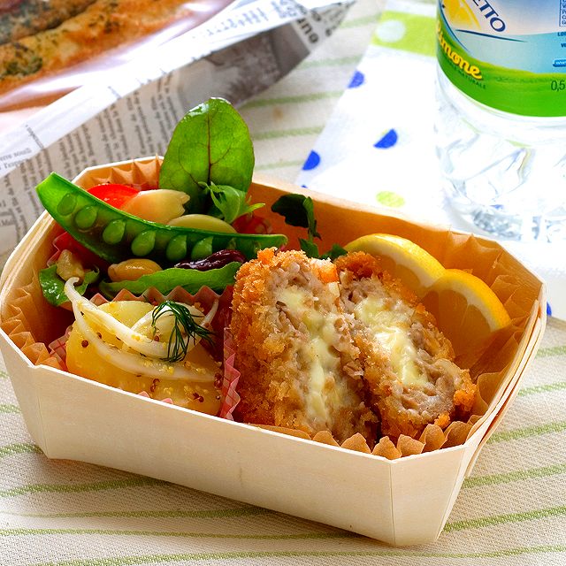 合挽肉の生地でなめらかなチーズソースを包み軽い食感のパン粉で仕上げました。