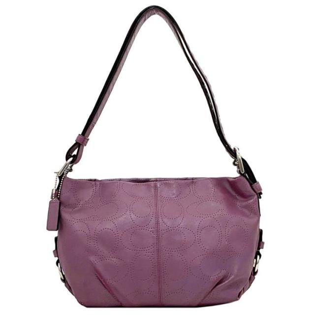コーチ セミショルダー バッグ ec-21155 パープル パンチング シグネチャー F17104 ショルダーバッグ レザー 中古 COACH ロゴ 肩掛け 2way 定番 人気 女性 レディース 通勤 通学 革 紫色 シンプル お洒落 エレガント 鞄 高級感 上品 ブランド 本物 鑑定済み