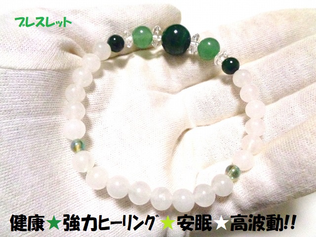 健康★強力ヒーリング・安眠・高波動をもたらす・魂と心を整え統一・平和・災難除け・病魔退散★マラカイト・ホワイトジェイド・アベンチュリン・グリーンオーラ・水晶★ブレスレット★パワーストーン★護符(霊符)