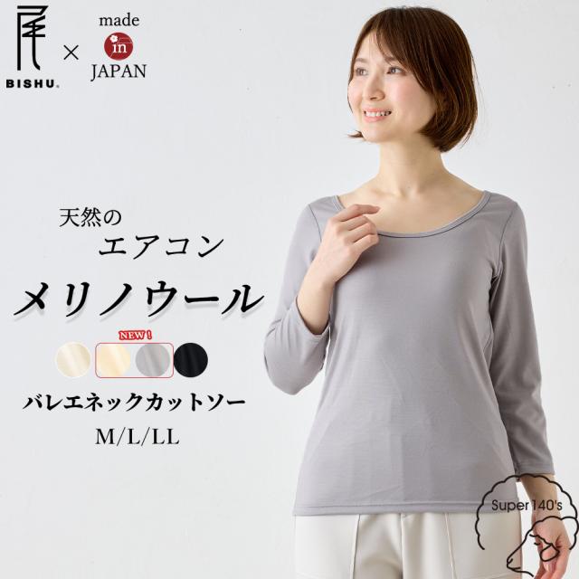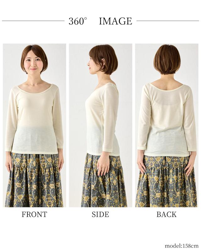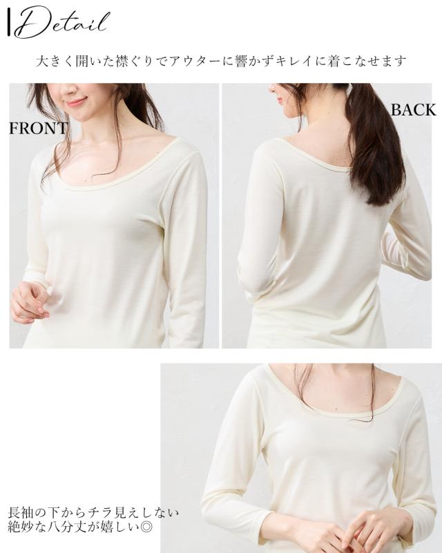 スーパー140 メリノウール バレエネック Tシャル 8分袖 レディース 日本製 インナー ウール100% ウォッシャブルウール バレリーナネック 登山 クルーネック カットソー 長袖tシャツ アンダーウェア カットソー ベースレイヤー 夏 秋 冬 30代 40代 50代 60代 洗えるウール