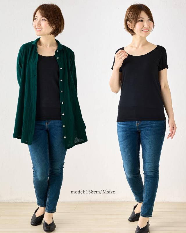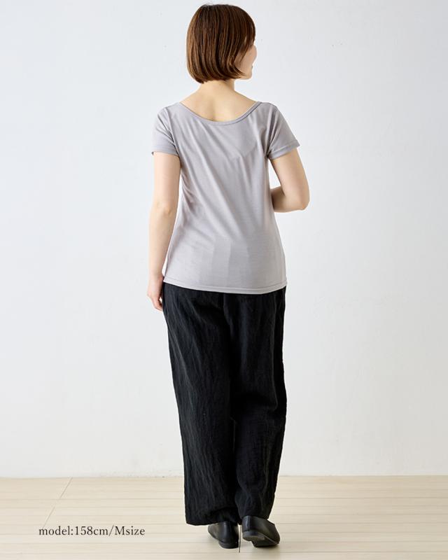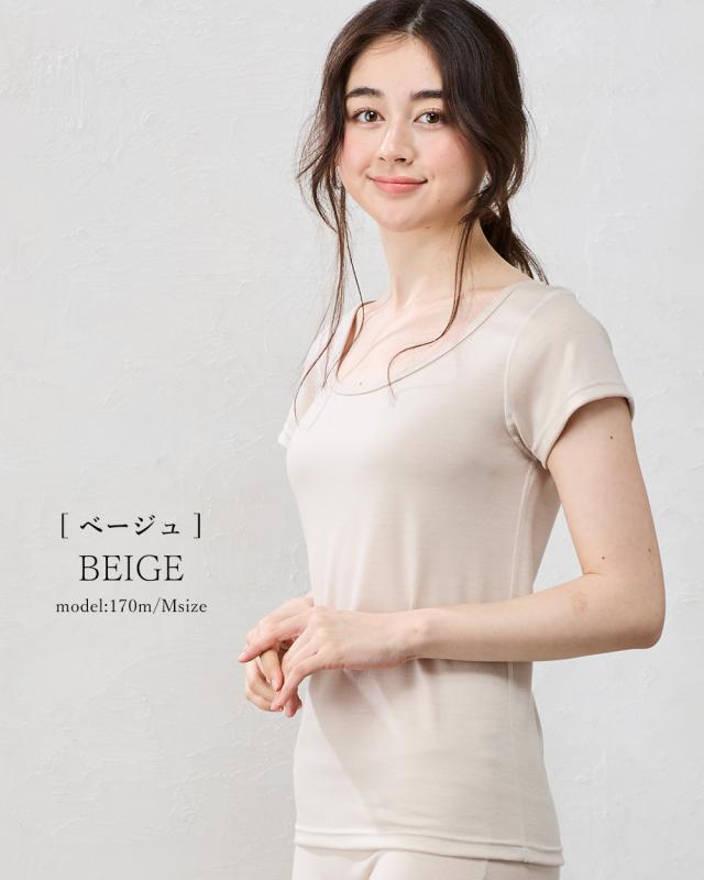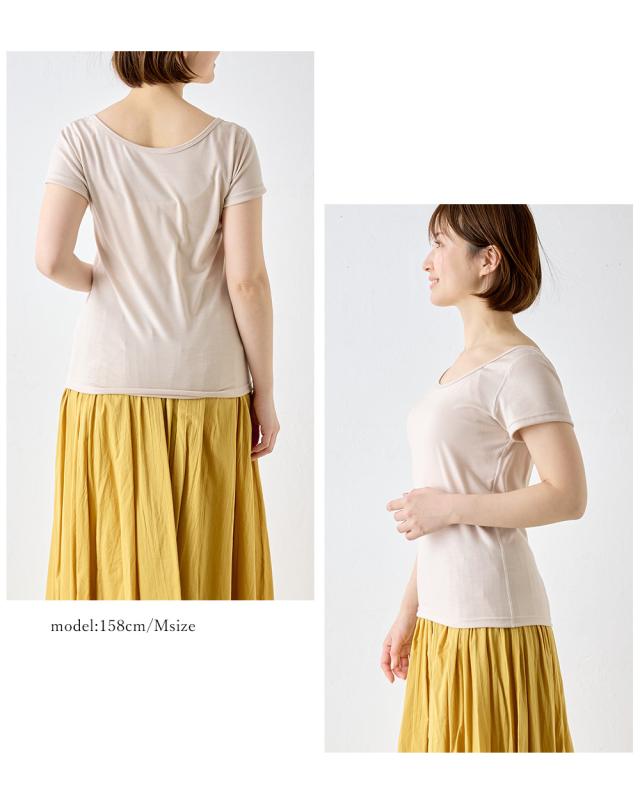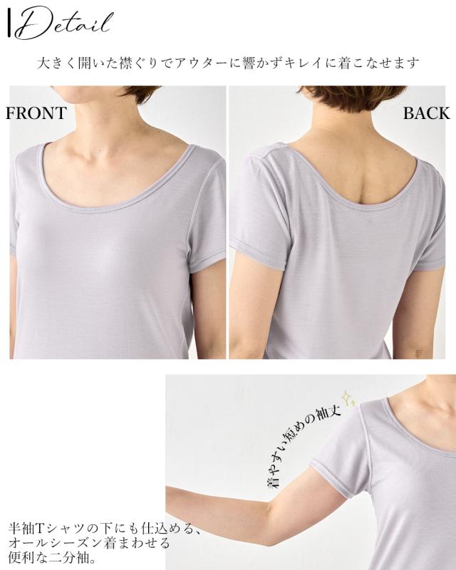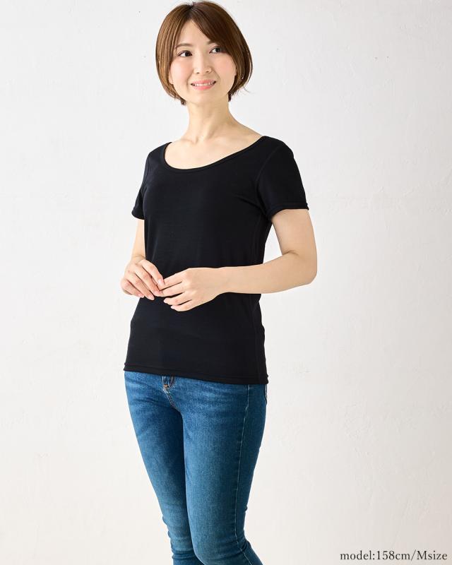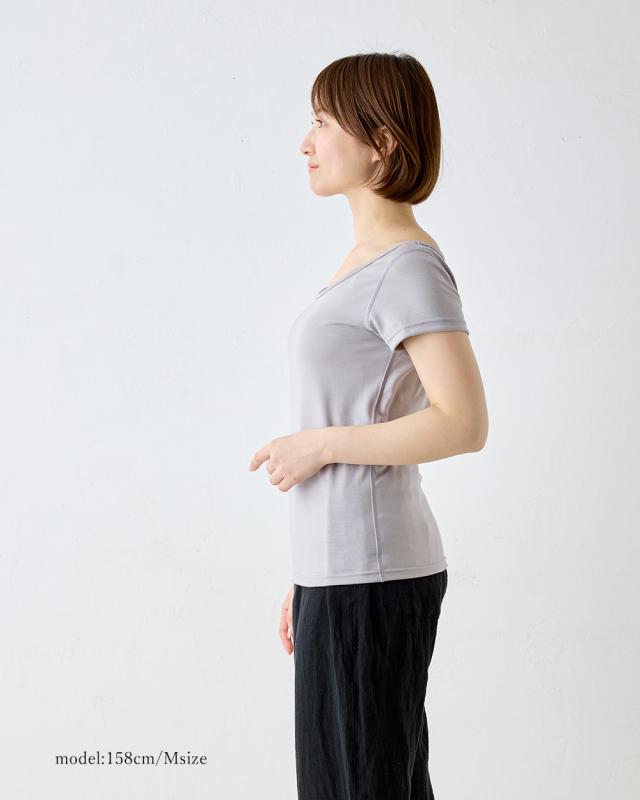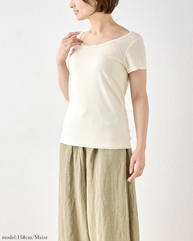 スーパー140 メリノウール バレエネック Tシャル 2分袖 レディース 日本製 インナー ウール100% ウォッシャブルウール バレリーナネック 登山 クルーネック カットソー 半袖tシャツ アンダーウェア カットソー ベースレイヤー 夏 秋 冬 30代 40代 50代 60代 洗えるウール