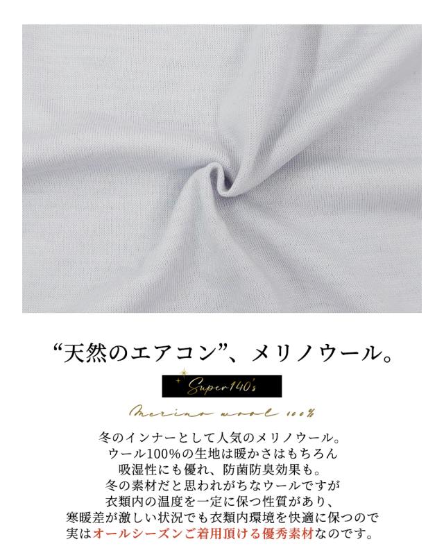 | 商品詳細/その他 | 繊細で貴重なメリノウール100%のベーシックインナー。チクチクしない柔らかな着心地は肌に寄り添う感覚です。 繊細な生地ですのでお洗濯は手洗いを推奨いたします。 またタンブラー乾燥はお避け下さい。 |