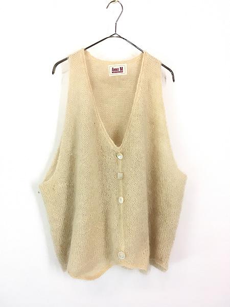 レディース 古着 80s USA製 ANNIE M シェルボタン モヘア ウール ニット ベスト L 古着