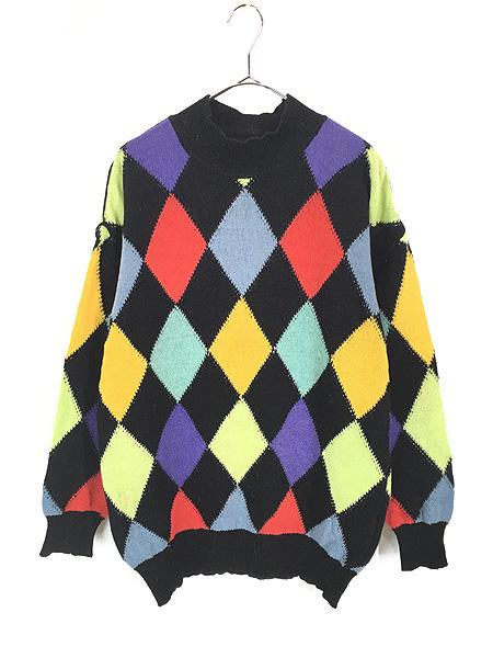 レディース 古着 90s ESPRIT カラフル ダイヤ 菱形 ハイネック ウール ニット セーター M 古着