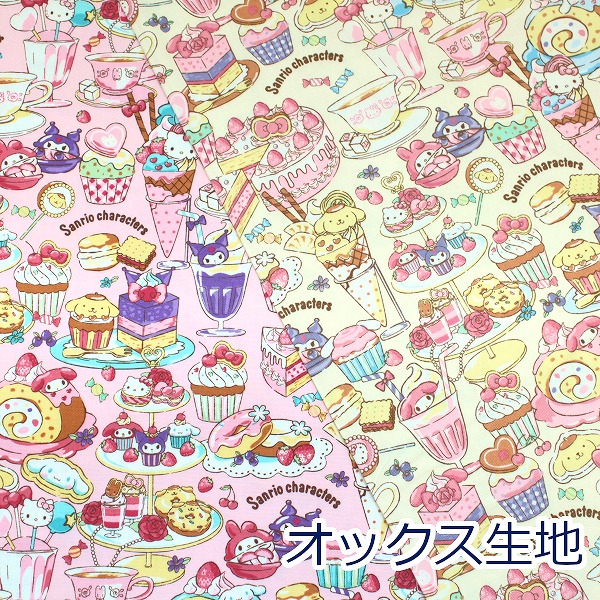 【10cm単位価格】 サンリオキャラクターズ スイーツ柄 ハローキティ マイメロディ オックス 綿100% 生地 布 約110cm幅 G-8968 入園入学 キャラクター ゆうパケット2m対応( ハンドメイド 手作り バッグ 手芸 巾着 日本製 )