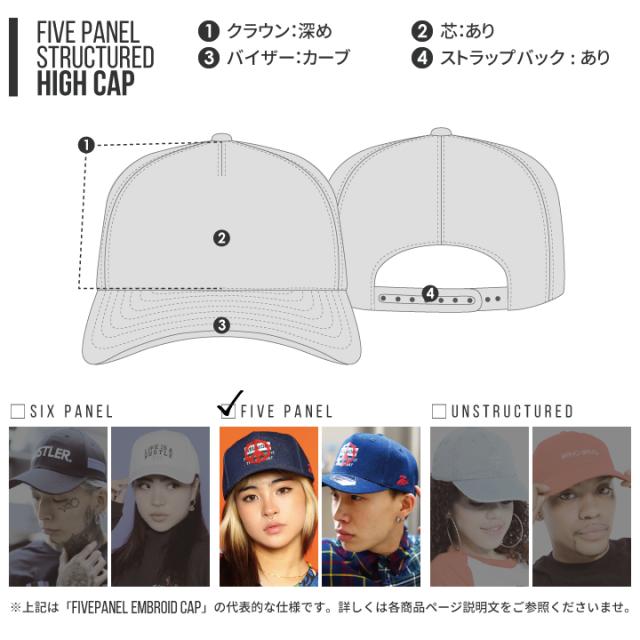 型番は、フェイスに縮み・型崩れ防止の芯があり、頭を覆うクラウンを5枚のパネルで構成した「FIVE PANEL STRUCTURED HIGH CAP/ファイブパネル ストラクチャード ハイキャップ」