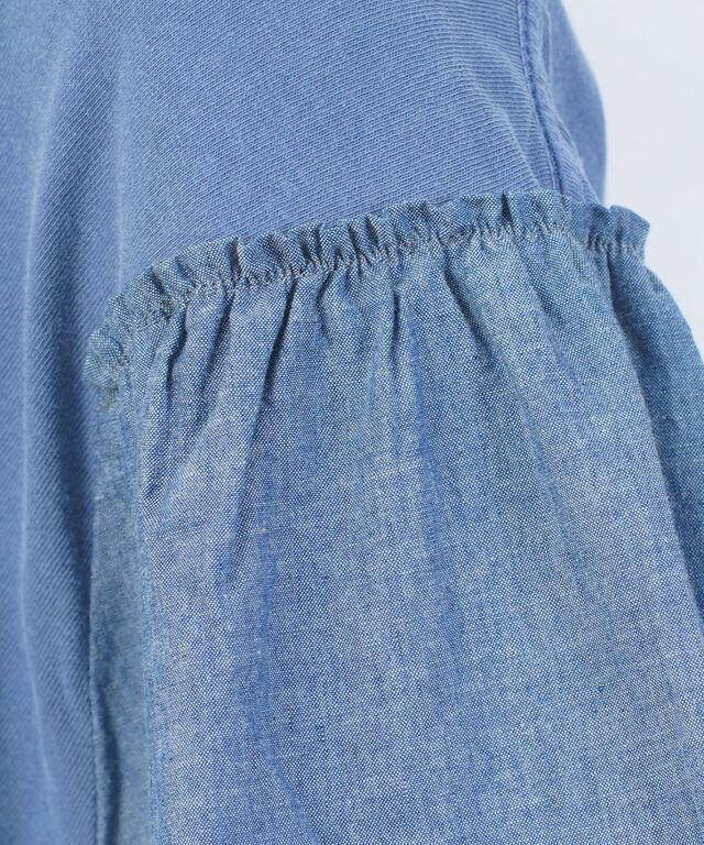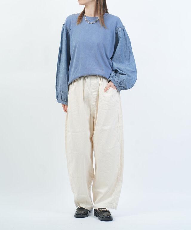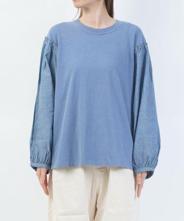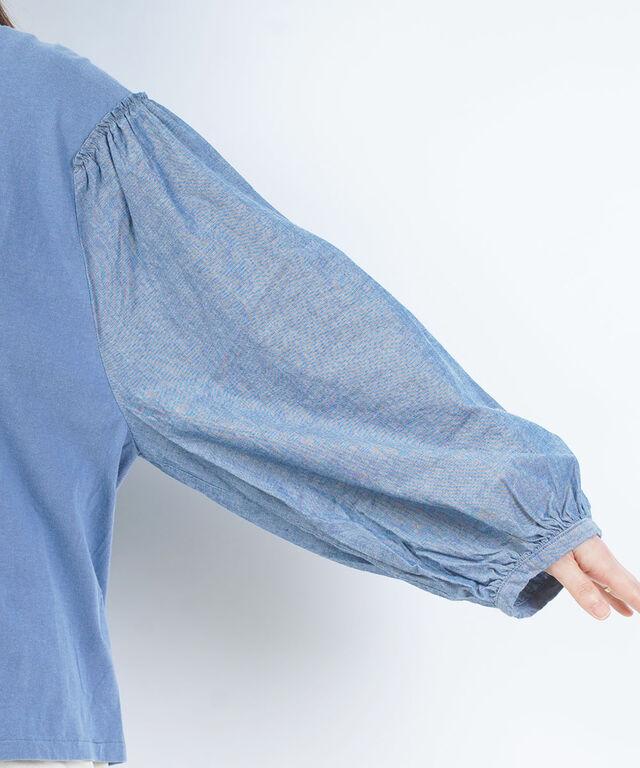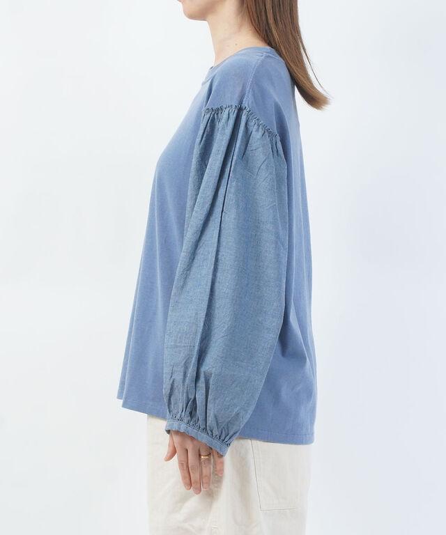 袖切り替えリメイクインディゴパフスリーブのプルオーバー。