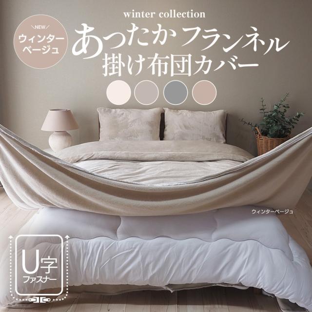 掛け布団カバー ダブル あったか フランネル 掛布団カバー U字ファスナー 高密度 厚みしっかり U20 キナリ ウィンターベージュ グレージュ グレー ウィンターコレクション