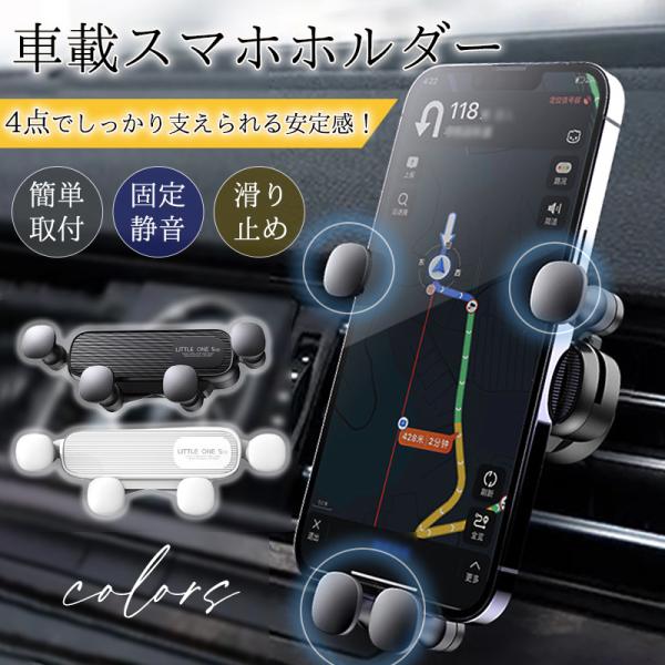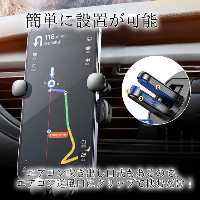 スマホホルダー 車載ホルダー 車 スマホ スマホスタンド エアコン口 吹き出し口 クリップ式 静音 縦置き スマホ 携帯 ミニ ナビ 重力