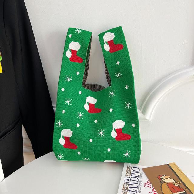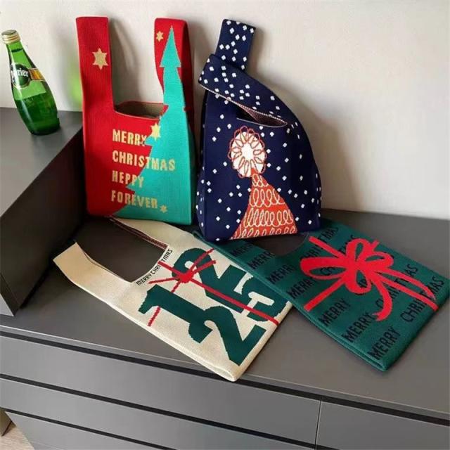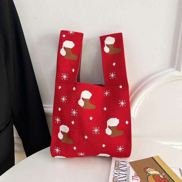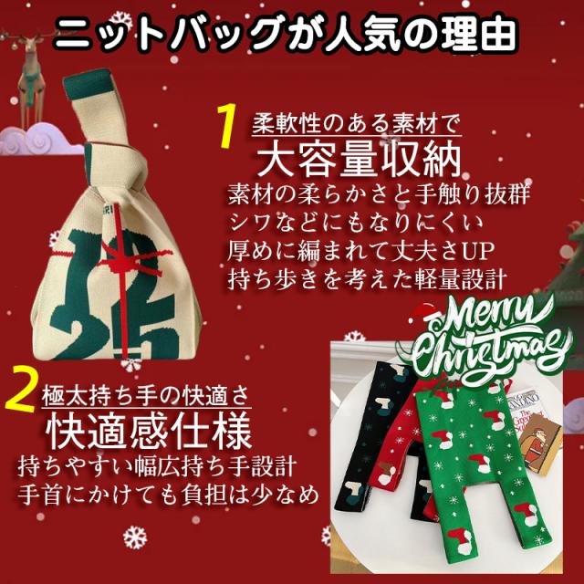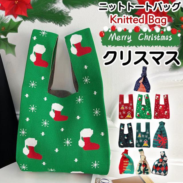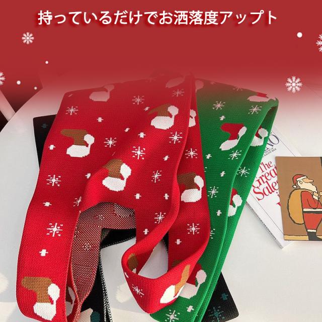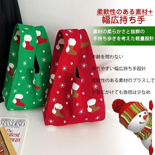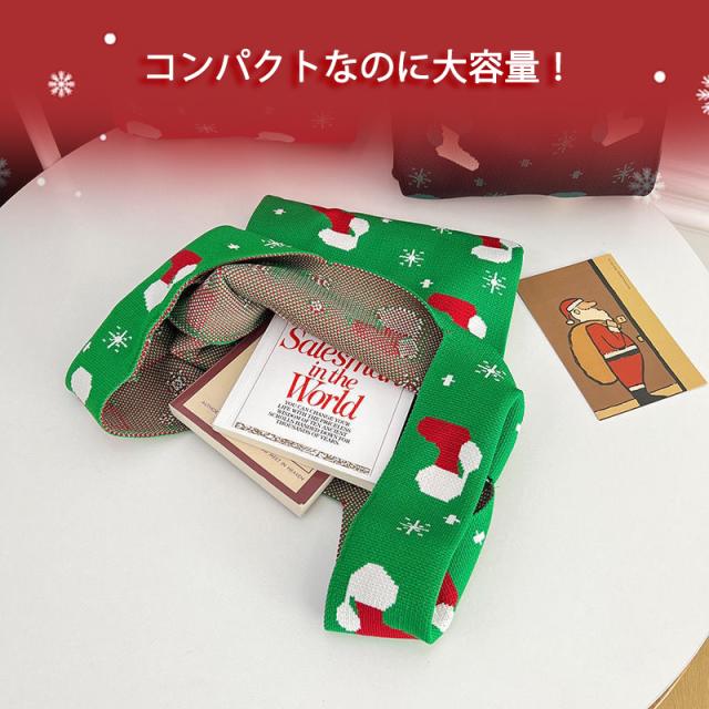 『今だけの価格!599円!』トートバッグ レディース ニットバッグ クリスマス バッグ ニット 縦型 クロシェ編み ハンドバッグ 小さめ 軽量