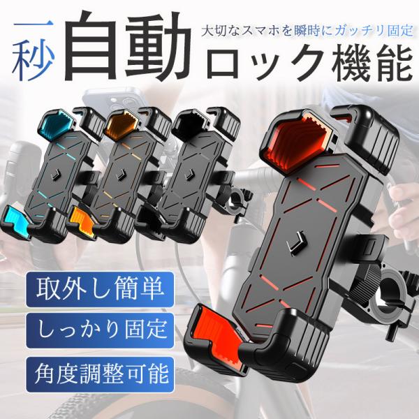 自転車 スマホホルダー 自動ロック バイク用 スマホスタンド 携帯ホルダー サイクリング ロードバイク 360度回転 振動吸収 脱落防止 強力保護