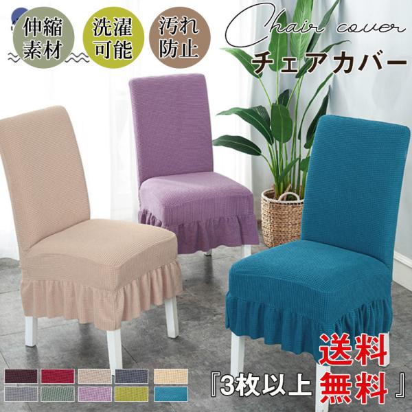 チェアカバー 椅子カバー 無地 フリル付き 洗濯可能 汚れ防止 オシャレ ひじ掛け無し用 いす 伸縮素材 フルカバー