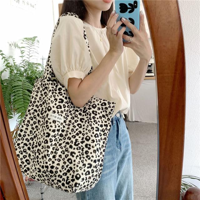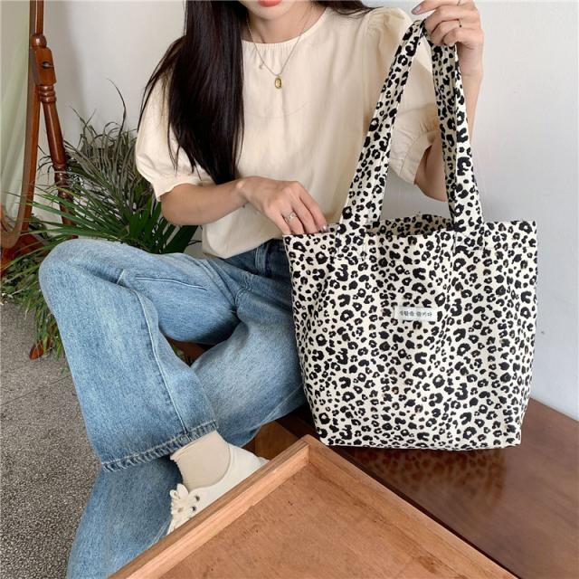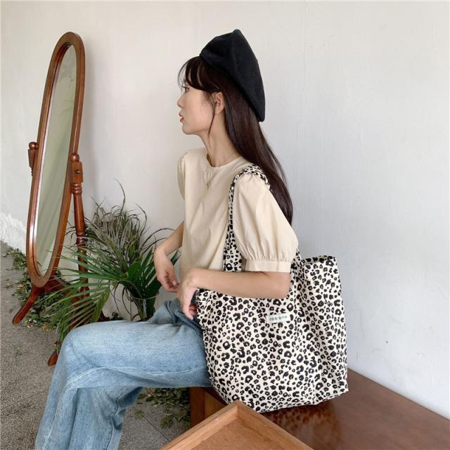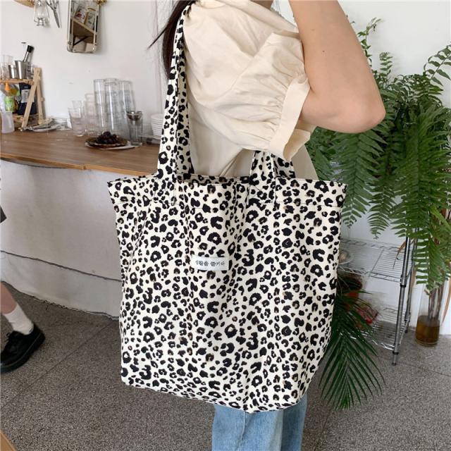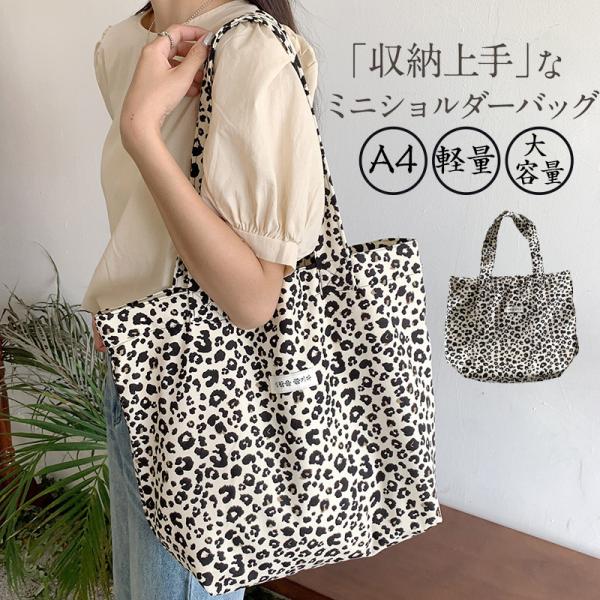 ショルダーバッグ レディース トートバッグ キャンバス バッグ 大きめ a4 豹柄 ヒョウ柄 バッグ シンプル 軽量 おしゃれ エコバッグ