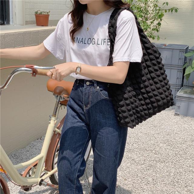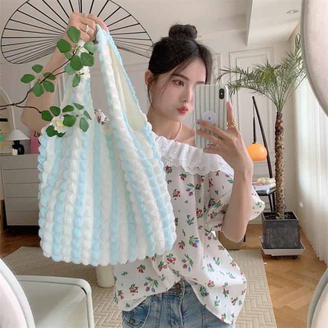 ポップコーン バッグ レディース トートバッグ ショルダーバッグ ポコポコバッグ エコバッグ 軽量 凸凹 バッグ シンプル 軽量 おしゃれ 通学 通勤