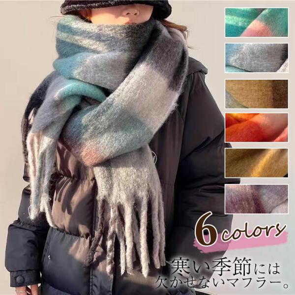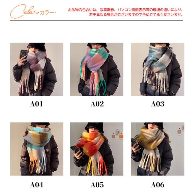 マフラー ストール レディース 大判 チェック柄 スカーフ 虹 ロングマフラー 暖かい 防寒 通勤 柔らかい ふんわり 暖かい かわいい 厚手 あったか