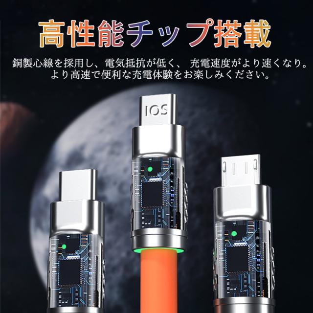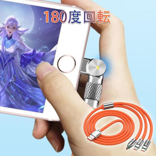 充電ケーブル 3in1 180度 回転 iPhone USB Type-C 1.2m 2m 急速充電 充電器 USBケーブル