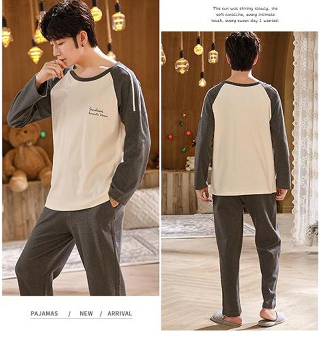 パジャマ メンズ ルームウェア 綿 長袖 薄手 前開き 上下セット ゆったり 秋冬 シンプル 肌に優しい 柔らか 軽量 部屋着 寝間着 吸汗通気