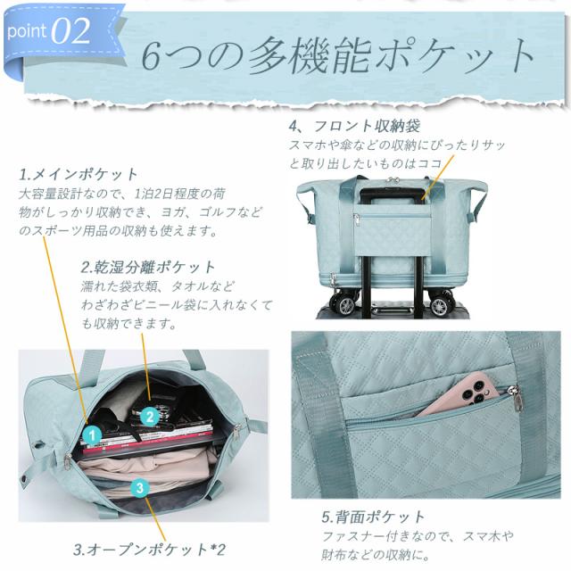 ボストンバッグ レディース メンズ キャスター付き 拡張可 旅行バッグ キャリーバッグ 折りたたみ 乾湿分離 男女兼用 大容量 機内持ち込み スポーツ