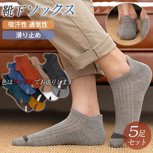 靴下 ソックス メンズ 5足セット くつした くるぶし ショート フットカバー 吸汗性 通気性 滑り止め 脱げない 蒸れない スポーツ 履きやすい
