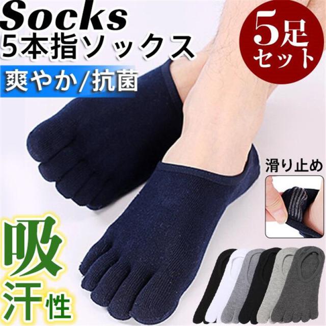 5本指ソックス メンズ 靴下 5足セット くつした ショート フットカバー 吸汗性 通気性 滑り止め 脱げない 蒸れない スポーツ 履きやすい