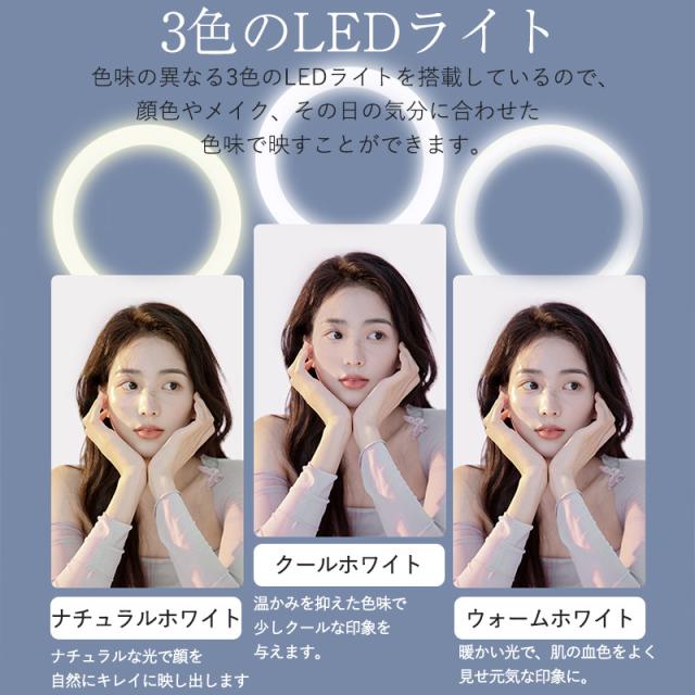 リングライト スマホスタンド LEDライト 折りたたみ スマホ 自撮りライト 撮影照明 3色モード 伸縮 自撮り動画撮影 PC 自撮り テレワーク