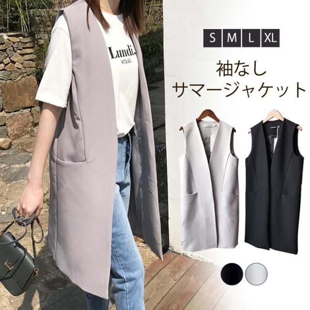 ロングベスト レディース 夏 ジレ ノースリーブ サマージャケット 袖なし 春 ベスト ジャケット きれいめ トップス 羽織り チョッキ