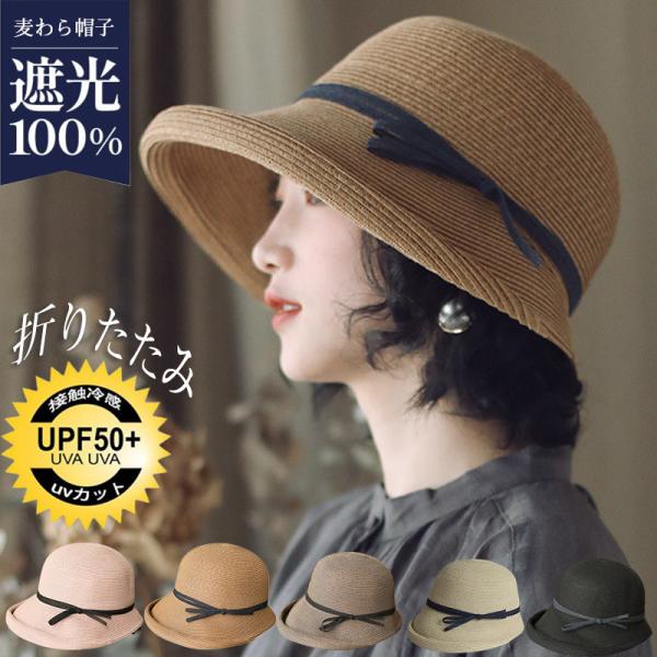 麦わら帽子 レディース 麦わらハット 大きめ UVカット 遮光100% 夏 バケットハット つば広 自転車 おしゃれ リゾート 折りたたみ 春 夏