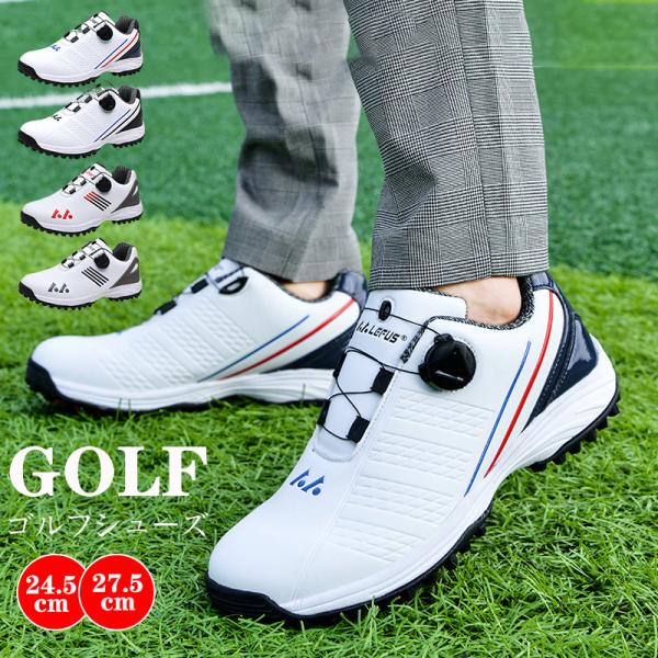 ゴルフシューズ メンズ ダイヤル式 スニーカー 大きいサイズ 幅広い スパイクレス フィット感 軽量 動きやすい 防水 耐久 練習場