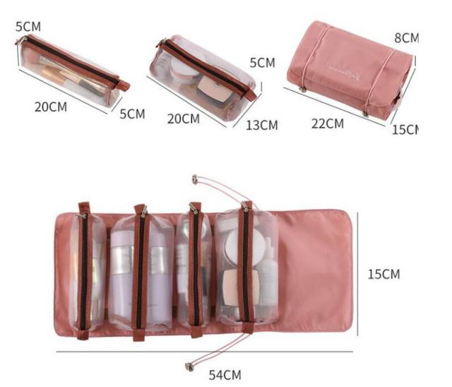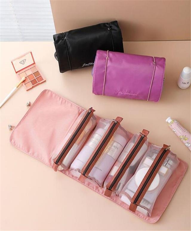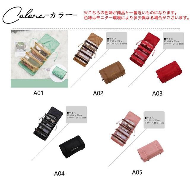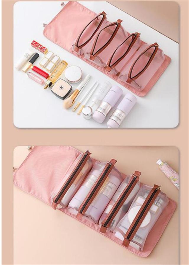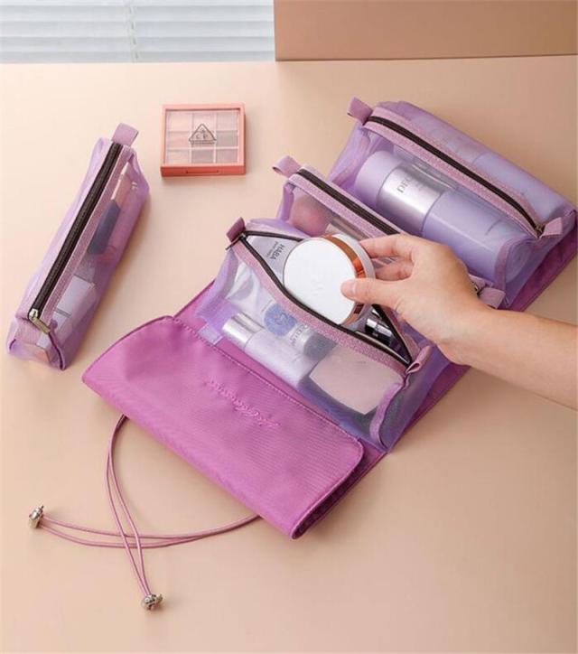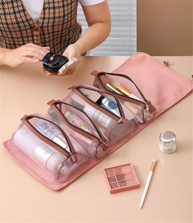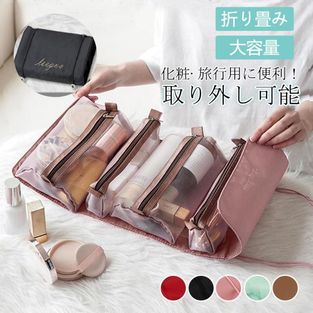 4つのメッシュポーチが一つにコンパクトにまとまる便利な折り畳み式ポーチ
