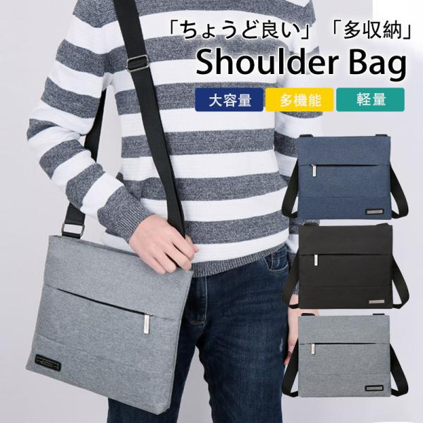 ショルダーバッグ メンズ ポケット 大きめ 斜めがけ 肩掛け ビジネス オフィス 事務 紳士鞄 メンズバッグ 軽量 カバン 通勤 カジュアル 軽い