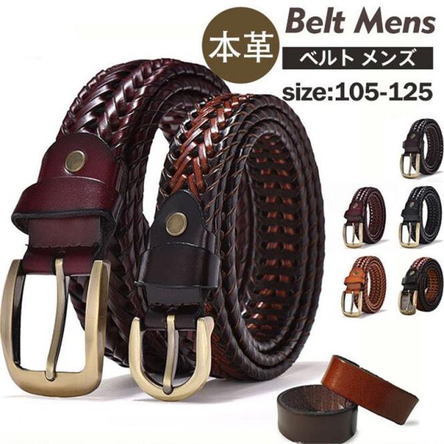 ベルト メンズ 編み込み メッシュ ビジネスベルト 紳士 本革 皮 牛革 ギフト プレゼント 丈夫 ゴルフベルト 穴なし 軽量 仕事 就活 父の日