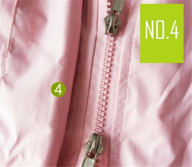 ◎ボタンを開けてもファスナーが付いているので、服が濡れる心配のない二重構造レインスーツ