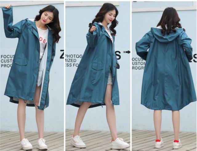 ◎自転車やバイクに乗るときもフロントのボタンを開ければ、運転も楽々なレインウェアー