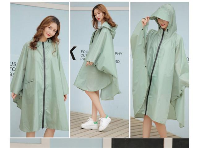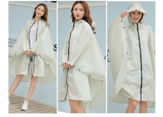 ◎自転車やバイクに乗るときもフロントのボタンを開ければ、運転も楽々なレインウェアー