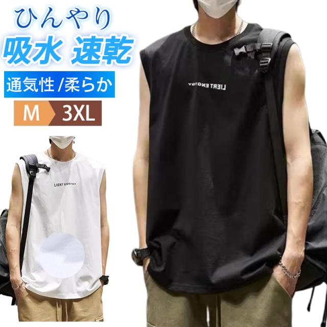 タンクトップ メンズ ノースリーブ カットソー 袖なし インナー 肌着 下着 スウェット ストレッチ 通気性 速乾 柔らか ひんやり ジム スポーツ