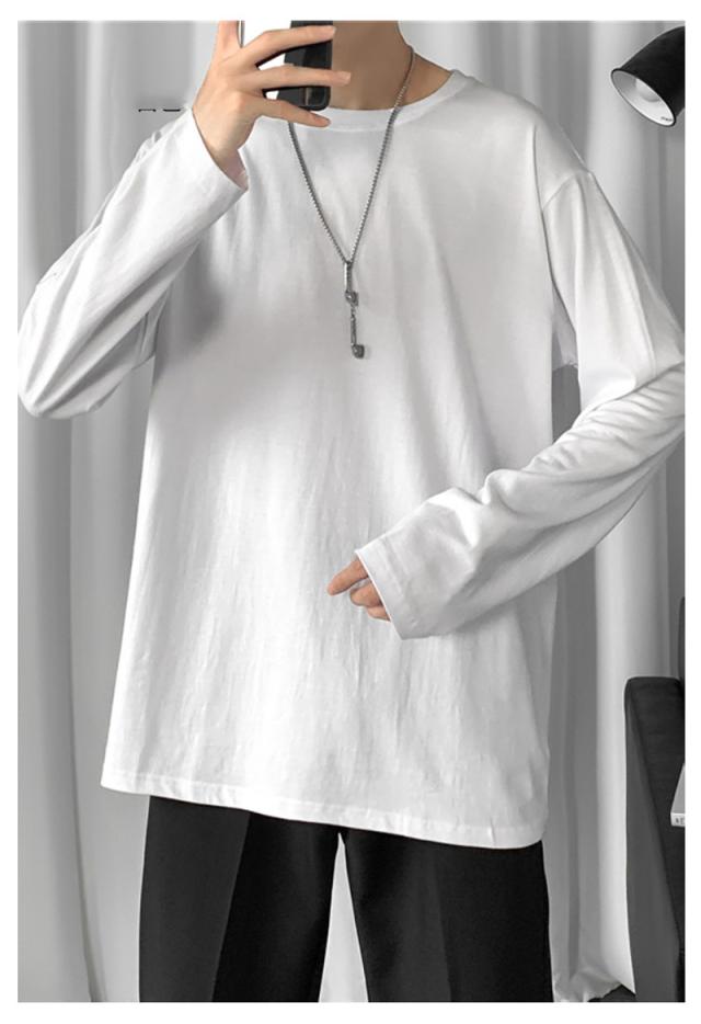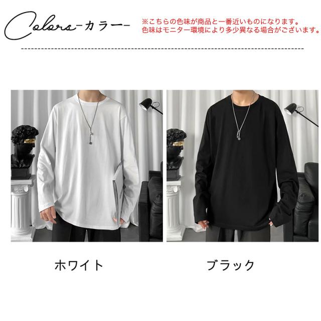 長袖Tシャツ メンズ ロンT 白 Tシャツ ブラック カジュアル 無地 シンプル インナー 春服 ビッグシルエット お兄系 大きいサイズ