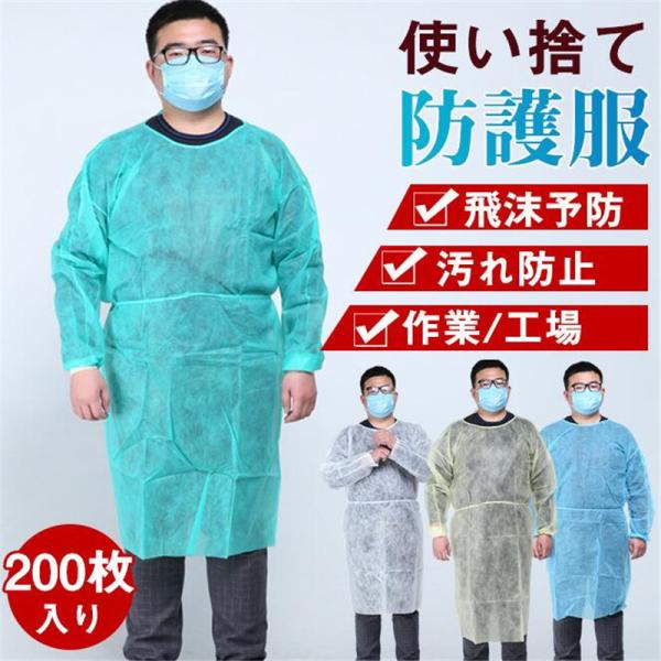 防護服 保護服 エプロン 200枚入り 不織布 使い捨て 隔離服 業務用服 化学防護服 作業服 工場 簡易防護服 老人ホーム 飛沫 感染 予防