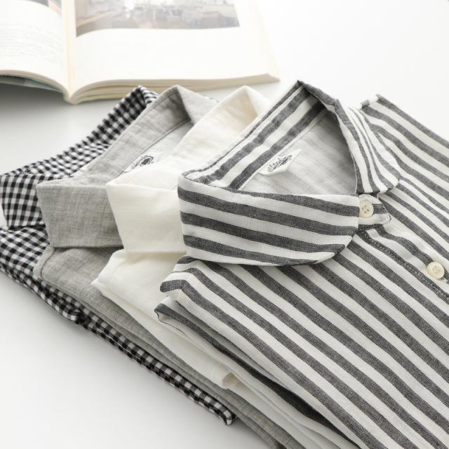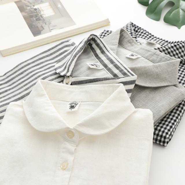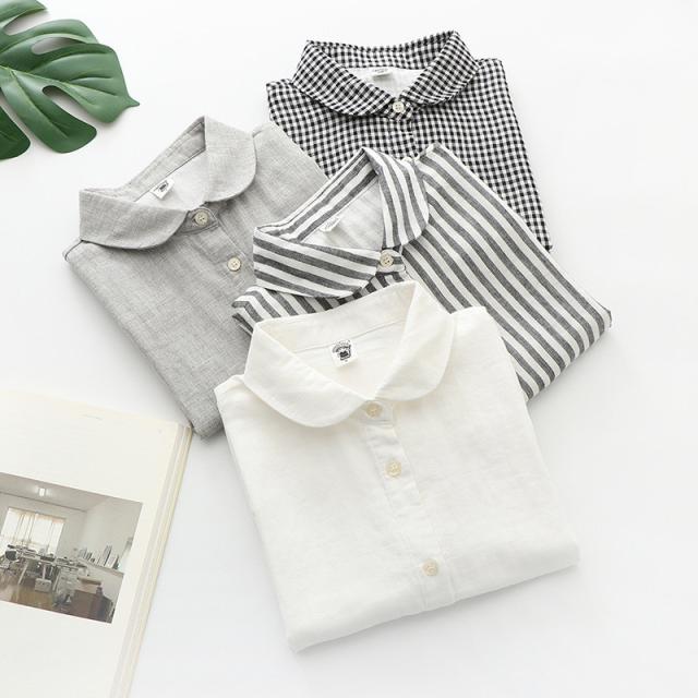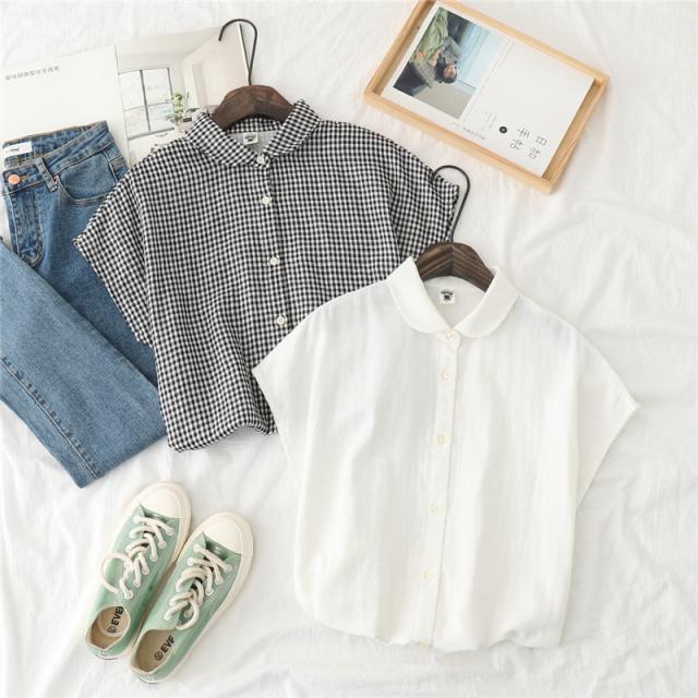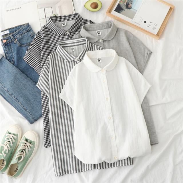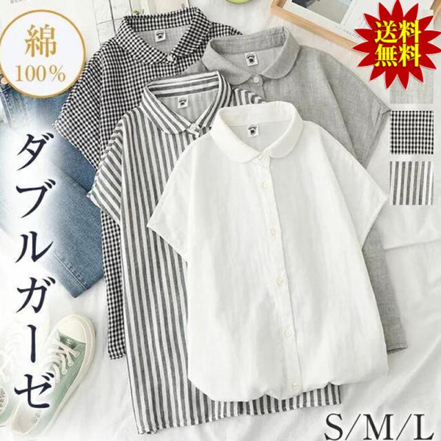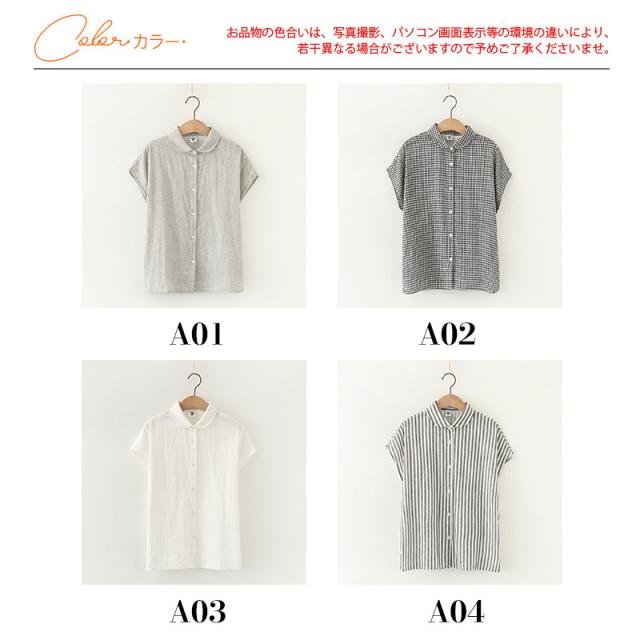 tシャツ レディース 半袖 カットソー ブラウス シャツ ガーゼ ブラウス レディース ストライプ柄 チェック柄 コットン 綿 通気性 シンプル 折り襟 夏