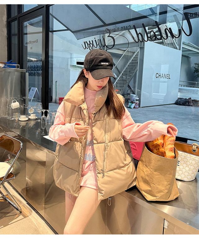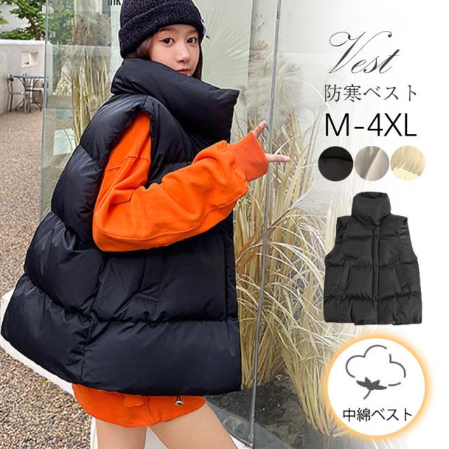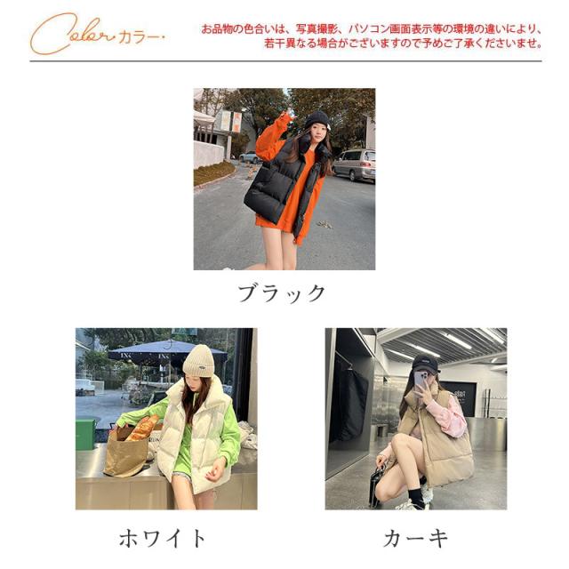 中綿ベスト レディース ダウンベスト ベスト 防寒ベスト ハイネック 中綿入り チョッキ ジレ アウター トップス 立ち襟 体型カバー 通勤 秋冬