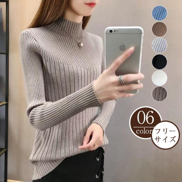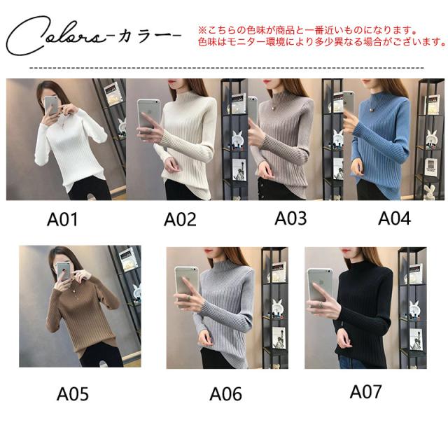 セール ニットセーター レディース ニット 長袖 秋冬 リブ ハイネック Tシャツ インナー セーター トップス 重ね着 可愛い 通勤