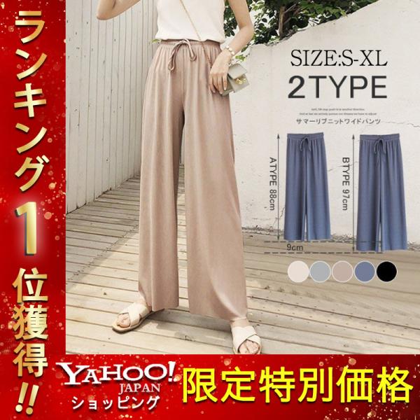 一部即日発送 ワイドパンツ レディース ボトムス ひんやりパンツ 秋新作 ズボン リブ リブニット ストレッチ ルームウエア 紐付き ゆったり 秋物