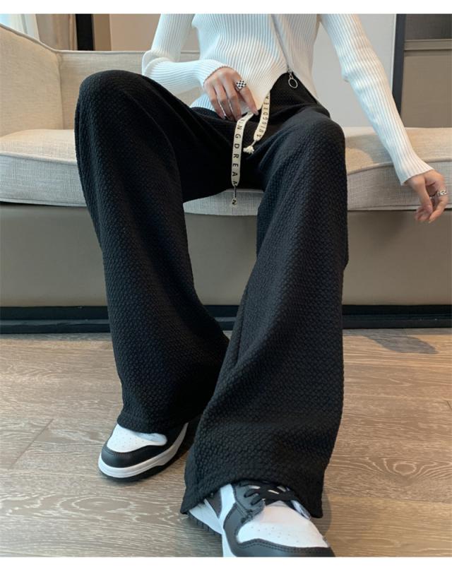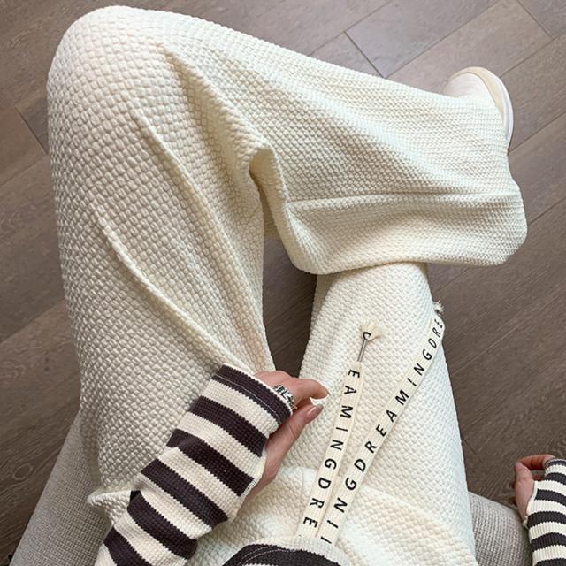 \2枚購入で200円OFF/ワイドパンツ レディース パンツ ロングパンツ ワイド スウェットパンツ エンボス加工 ウエストゴム ひんやり 春 春物 夏 体型カバー