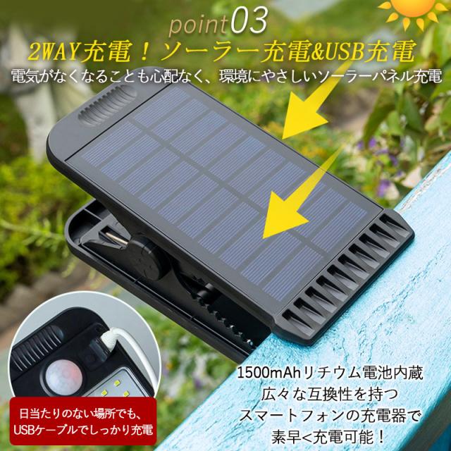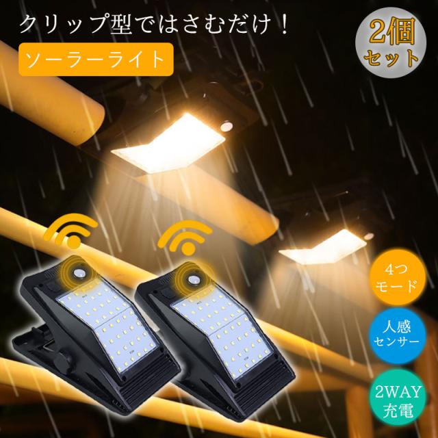 ソーラーライト 屋外 庭 センサーライト クリップ式 2個セット USB充電 人感センサー クリップライト ledライト 防水 ガーデンライト