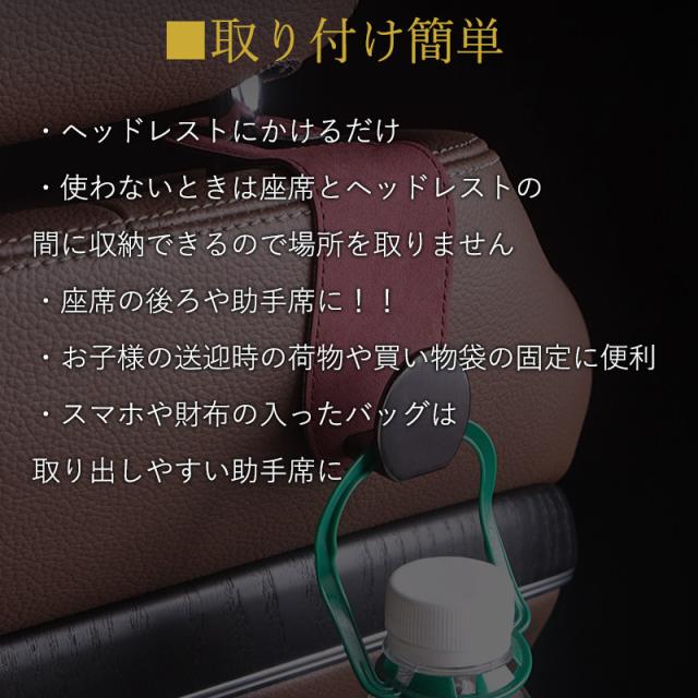 車用 フック シートフック ヘッドレスト 2個セット 荷物フック 運転席 助手席 傘 バッグ ゴミ袋 引っ掛け シート 取り付け 収納 荷物掛け 車用