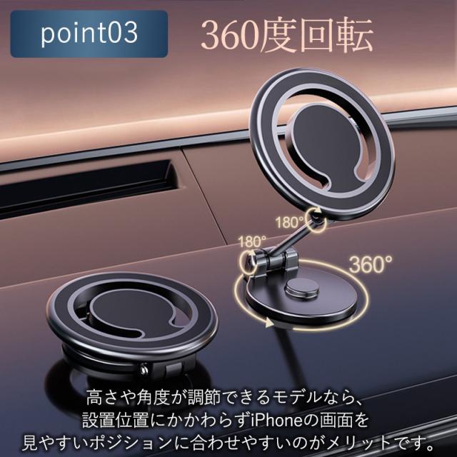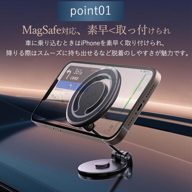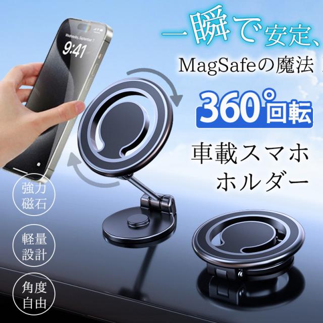 車載ホルダー スマホホルダー 車 スマホスタンド 360度回転 折り畳み マグネット 強力 取り付け簡単 Magsafe コンパクト 車用